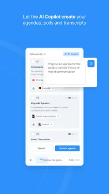 One of the unique features of this application is its AI Copilot, which utilizes artificial intelligence to enhance the meeting experience. It can take transcripts, create smart summaries and action points, launch polls, and even create agendas.