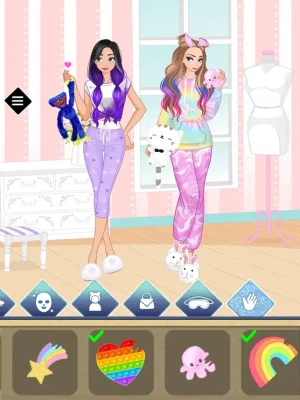The game starts with a rock concert, where players must choose the perfect outfit, hairstyle, and accessories for their rock star character. Next, they move on to a school day, where they can dress up as an honors student or create fashionable outfits for their girlfriends. The final stage is a pajama party, where players can relax and have fun with their friends by trying on cute slippers, making face masks, and taking selfies.