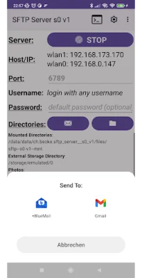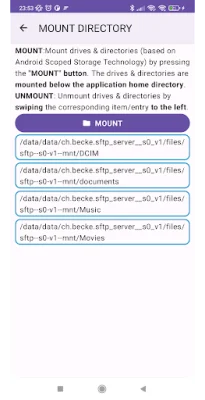 The SFTP Server s0 v1 is an application that allows for the mounting of drives and directories using Android Scoped Storage. This feature is only available for devices with Android Version 5.0 or higher. The application has been tested and works well with various SFTP Client applications such as SSHFS, GIO/GVfs, SFTP, FileZilla, WinSCP, PSFTP, Cyberduck, Mountain Duck, and Total Commander SFTP Plugin. It offers automatic public key handling based on user preferences.