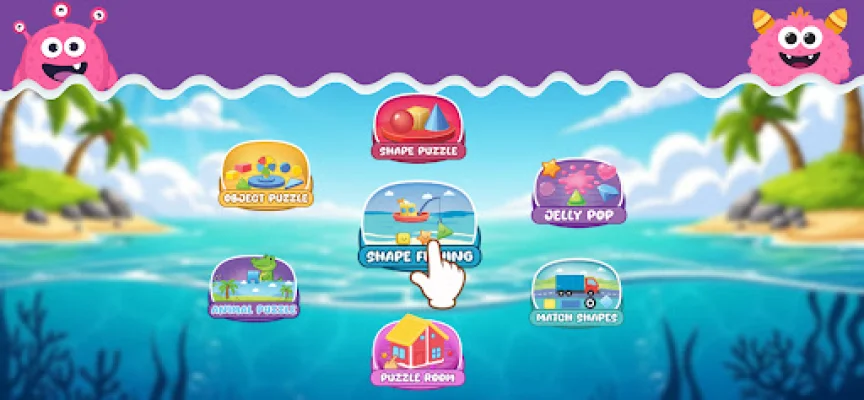 One of the key features of this app is the Shape Escape Fishing Adventure, where children can catch fish by matching the correct shapes. This game encourages exploration, attention, and confidence while reinforcing shape concepts through play.