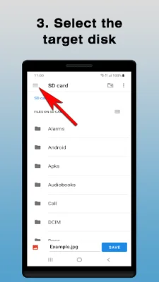 If the user does not see all available disks, they can press the menu button in the upper left corner to access additional options. This ensures that all available disks are visible and the user can choose the desired destination for their shared data.