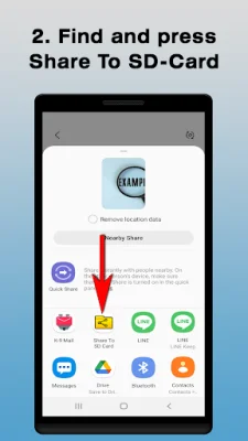 This app allows users to easily share data with others by simply pressing a share button. The app offers a variety of options for sharing, including the ability to share data to an SD card. To access this option, users can find and press the "Share To SD-Card" option in the list of sharing options.