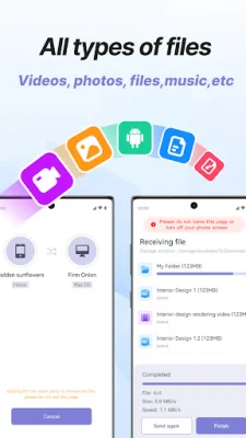 Lastly, Share Transfer file supports a wide range of file formats, including documents, pictures, videos, audio, and more. This makes it a versatile tool for all your data transfer needs, giving you the freedom and flexibility to transfer any type of file. With its user-friendly interface and efficient features, Share Transfer file is a must-have tool for anyone looking to transfer files quickly and seamlessly between devices.