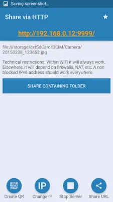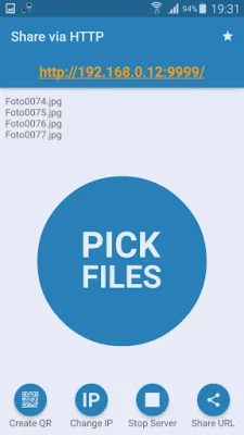 This application allows users to easily share one or more files by opening an HTTP server. This server can be accessed by anyone, allowing them to download the shared file. Additionally, users can share files directly from any Android app by clicking on the "share" option and selecting "Share via HTTP". The link to access the shared file will always be the user's phone's IP address on port 9999, for example: http://10.1.1.100:9999/.
