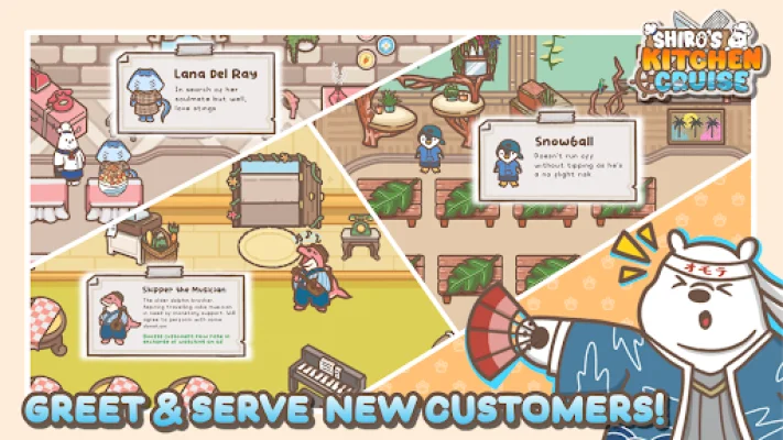But the fun doesn't stop there – players will also have the chance to meet special customers, each with their own favorite dishes and stories. With its deep strategy and feel-good vibes, Shiro’s Kitchen Cruise is perfect for fans of cooking games, food-themed tycoons, and kawaii art styles.
