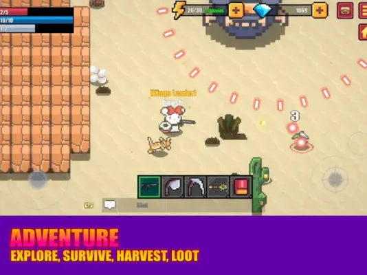 This application is a pixel roguelike shoot em up game that offers a unique combination of action, survival, farming, and building. It features lots of shooting, with a variety of weapons such as guns, staves, and swords to choose from. Players must shoot monsters to pieces in order to survive and progress in the game.