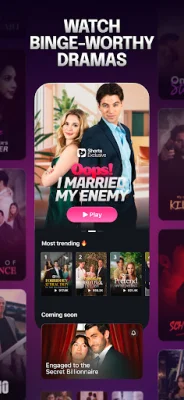 Shorts is an app that offers a variety of drama series, short stories, and TV clips in bite-sized episodes that are addictively entertaining. Whether you're a fan of billionaire secrets, steamy CEO romances, alpha males, or revenge plots, there's always a new short drama waiting for you to watch. The episodes are quick to watch, ranging from 1-3 minutes, making it impossible to pause and easy to binge-watch. With fresh original drama series added every week, there's always something new to discover.