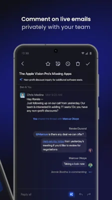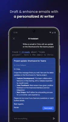 The app's AI assistant is another powerful tool that can help you and your team write emails, improve drafts, schedule meetings, analyze threads, translate text, and more. It learns your unique writing style and even gathers information about you from the emails you send, making it easier to personalize your messages and save time.