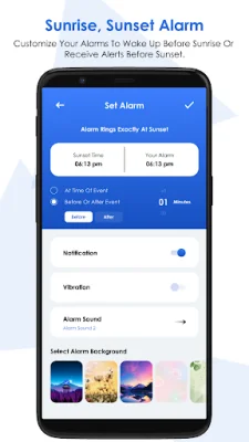 The app also provides information on sunrise and sunset times for your location. You can even set an alarm for either of these events. Additionally, the KML viewer feature allows you to view geographical data in your browser. This can be useful for various purposes such as planning a trip or studying a specific location.