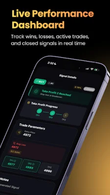The app offers real-time market signal ideas for various categories such as Forex, Crypto, Stocks, and Commodities. Each signal includes suggested entry levels, risk management references, and multiple target levels. Users can also filter signals by market category and review historical outcomes for learning and analysis purposes.