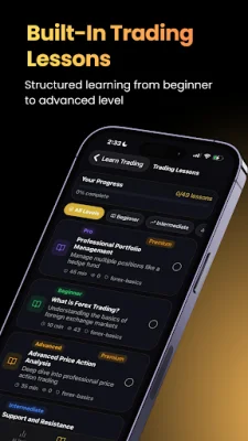 The app also has a referral program where users can earn commission by referring others to upgrade to the Premium version. Premium users have access to enhanced educational features such as unlimited access to market signal insights, extended AI chart analysis usage, ad-free experience, priority notifications, and AI-powered market insights based on public economic data.