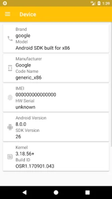 The device information section of the app provides details about the user's device, including the brand, model, manufacturer, code name, IMEI, hardware serial number, Android version, SDK version, kernel version, build ID, and phone type. This information can be useful for users who want to know more about their device or for troubleshooting purposes.