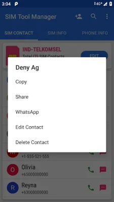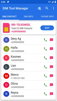 The SIM Contact application allows users to easily manage their sim card contacts. This includes adding new contacts, modifying existing ones, and even copying and sharing contacts. Users can also export their sim contacts into their phone for easy access. Additionally, the app allows users to make calls and send messages directly from their sim contacts without having to add them as a contact on their phone.