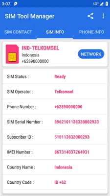 In the SIM Card Info tab, users can view important information about their sim card, such as its status, operator, network type, and more. They can also copy and share this information for their own records.