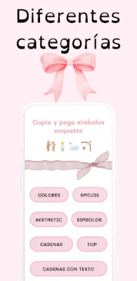 Descarga nuestra aplicación de Símbolos Coquette y Aesthetic y descubre una amplia variedad de opciones para darle un toque especial a tus mensajes y publicaciones. Disfruta de los símbolos más bonitos y estéticos para copiar y pegar en cualquier lugar que desees.