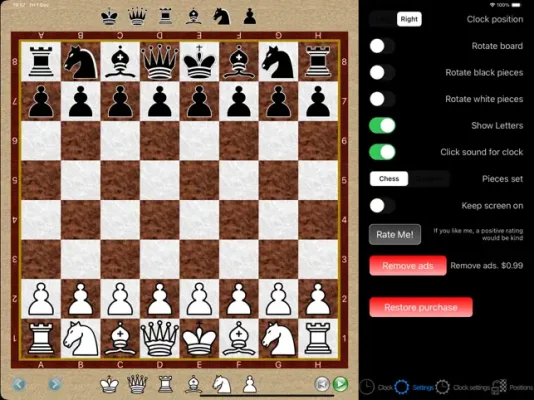 One of the unique features of this app is the ability to save and load positions for later use. This is especially useful if you want to take a break from the game and come back to it later. You can also delete saved positions by swiping over them. Additionally, there is a chess clock feature where you can configure the initial time, move time increment, increment after a certain number of movements, and even an hourglass time.