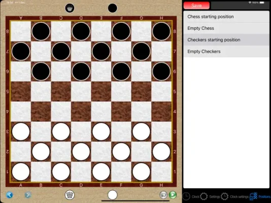 This application allows you to play chess and checkers on your device. You can move the pieces freely, add or remove them as you wish. If you make a mistake, you can easily undo or redo your last movement. You also have the option to rotate the board and/or pieces for a different perspective. The game pieces used are checkers, and you can choose from a variety of starting positions for both chess and checkers.