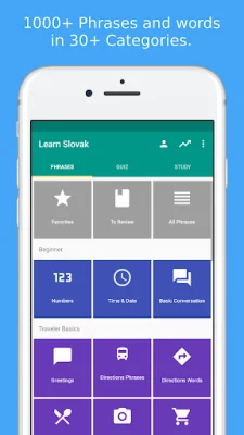 The app has over 300 free Slovak phrases and words, with high-quality audio recordings. It also has a quick search function and the ability to adjust settings for the quiz and flashcards to cater to individual learning needs.