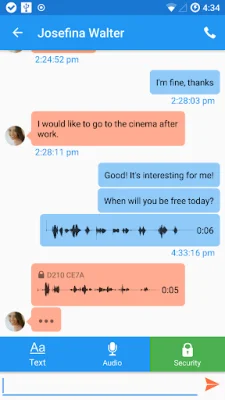 In addition to voice and video calls, Sipnetic also offers instant messaging with text and voice chat capabilities. The app prioritizes security, offering secure calls based on TLS, SRTP, and ZRTP protocols. Chat messages are also end-to-end encrypted using the OTRv3 protocol. These security features are available as a premium option. Sipnetic also integrates with system contacts and supports presence information based on the SIMPLE protocol suite.
