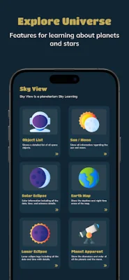 But that's not all - Sky View also offers features such as visualizing the Earth's day and night zones to help with stargazing planning, detailed information about the sun and moon, and a comprehensive list of satellites with photos and specialized information. You can even travel through time to observe the changing sky and learn more about the universe.
