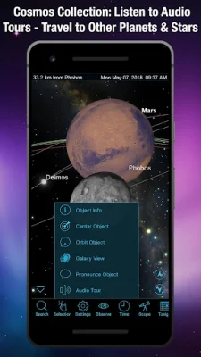 SkySafari 7 also offers guided audio tours, providing over four hours of narration to teach users about the history, mythology, and science of the heavens. The app also includes a pronunciation guide for celestial objects, helping users learn how to correctly pronounce their names. With SkySafari, you can also simulate the night sky from any location on Earth, past or future, and track the movements of the Sun, Moon, and Mars.