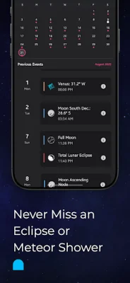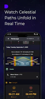 Never miss a celestial event again with the Calendar feature, which displays lunar phases, eclipses, equinoxes, solstices, and planetary events. You can also easily track Moon apogee/perigee, conjunctions, and meteor showers with this feature. And for those interested in the movements of the Sun, Moon, and planets, the Periscope feature allows you to see their paths from your location and plan observations and photography accordingly.