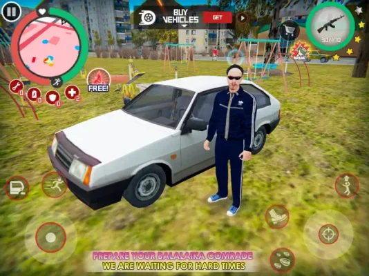 The game features a crazy interactive experience, with a large selection of weapons and various enemies, including robots. You will also have access to a wide range of transportation options, including famous cars made in the USSR. The game also offers character customization and upgrades, with a large selection of clothes to choose from. Completing interesting quests will help you earn game money and upgrade your character, leading to cool adventures and challenges.