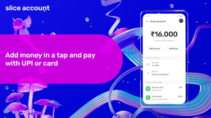 The Slice account is designed to make payments effortless and hassle-free. Users can load money onto their account and use it to pay for expenses using UPI or a debit card. The app also offers a pinless UPI payment option for transactions up to ₹5000, with the chance to earn instant cashback. Additionally, Slice can automatically pay bills and recharge services, making it easy to stay on top of payments.