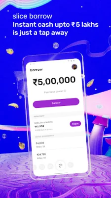 For those in need of a quick loan, Slice offers a borrowing feature that allows users to access up to ₹5,00,000 instantly. The process is paperless and the amount is transferred directly to the user's bank account. With flexible repayment options and the ability to check their credit score for free, Slice makes borrowing and repaying money simple and stress-free.