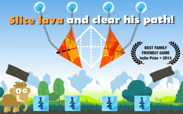 The goal of the game is for kids to help a mammoth clear its path by slicing through ice and lava, while also unraveling the mystery of fractions. The game features over 140 physics puzzles, where kids can learn fraction concepts without the use of words. It has also been reviewed by researchers at a Canadian university, ensuring its educational value.