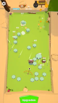 This application is a game where the player must defeat a certain number of slimes in order to level up. However, if the player runs out of arrows, their level progression will reset. The key to success in this game is to play strategically and aim to defeat as many slimes as possible with each arrow shot.