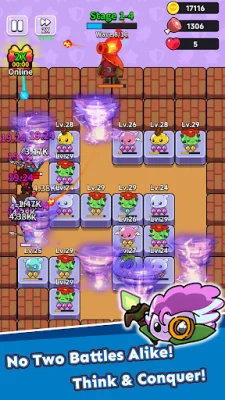 In SLIME DEFENDER, you will start with weak blobs and evolve them into powerful defenders with unique abilities. Every merge is a surprise as you can receive random powerful buffs such as attack speed boosts, critical strikes, or freezing effects that can turn the tide of battle instantly. This adds an element of unpredictability and excitement to the game.