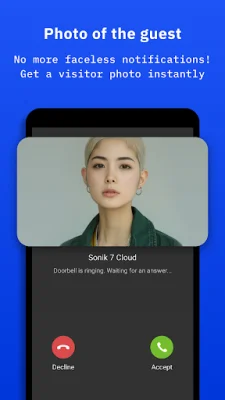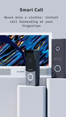 The Slinex Smart Call application allows users to receive encrypted incoming calls from visitors and control the connected lock directly from their smartphone. This ensures secure communication and prevents signal interception. Users can also see a photo of the visitor on their phone when they press the call panel button, helping them decide whether to answer.