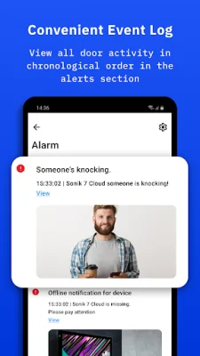 The app also includes an event log, which displays a chronological list of all events at the door in a convenient alerts section. Other innovative features include notifications if the device goes offline, a list of devices with real photos for easy identification, the ability to rename channels for convenience, and a quick access icon for easy access to desired devices.