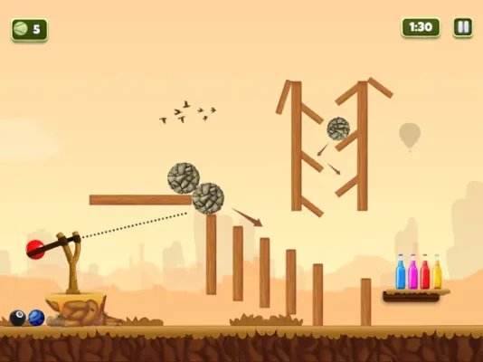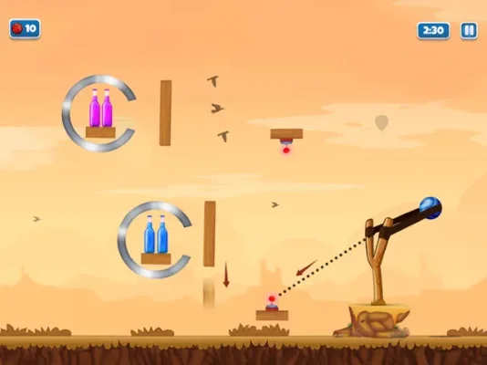 One of the standout features of Slingshot King is its 200+ levels, providing endless bottle-smashing fun with increasing difficulty. You'll also have the opportunity to explore three thrilling modes - Jungle, Desert, and Snow - each offering unique challenges to keep the game exciting and fresh. And with a variety of projectiles to choose from, such as tennis balls, snooker balls, baseballs, and cricket balls, you'll have plenty of options to smash those bottles in knockdown games.