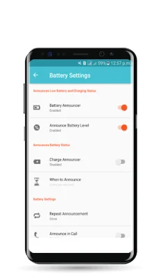 Users have the option to set the number of repetitions for announcements, as well as receive battery and data announcements for connectivity and charging. The app also allows for announcements in the user's local language, if supported by their device.
