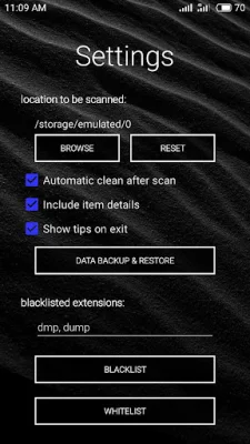 Lastly, the app offers a data backup and restore feature, which allows you to backup all the data from the app, including blacklist, whitelist, and preferences. This ensures that you can easily restore any important data if needed. Overall, this is a highly efficient and comprehensive cleaning app for Android devices.