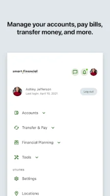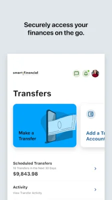The Smart Financial Android Mobile App is a convenient and secure way to manage your finances on the go. With this app, you have the freedom to access your account anytime and anywhere, giving you peace of mind and control over your finances. Whether you're at home, at work, or on the go, this app allows you to stay connected to your finances at all times.