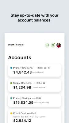 The app also offers new and updated features, such as a user-friendly interface for easy navigation. You can also enroll in Balance Peek to quickly check your account balance without logging in. For added security, you can use Fingerprint ID to quickly and securely log in to the app. You can also view check images and enroll in mobile banking directly through the app. With all these features and tools, the Smart Financial Android Mobile App is a comprehensive and convenient way to manage your finances.