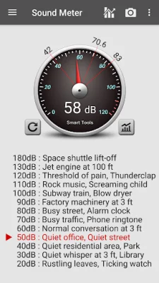 The Sound Meter application is a useful tool that utilizes your device's microphone to measure the volume of noise in decibels (db). It also provides a reference for comparison. It is important to note that most microphones are designed to pick up human voices, so the maximum value that can be measured is limited by the manufacturer. This means that very loud sounds, such as those above 90 dB, may not be accurately recognized. However, the results can be trusted for routine noise levels between 40-70 dB.