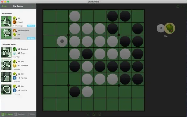 Smart Othello is a game application that offers five levels of difficulty for players to choose from, ensuring that they find the perfect challenge for their skill level. The app also includes a built-in tutorial and teaching aids to help players improve their game and advance to the next level. With its simple rules of bracketing opponent discs and flipping them to your color, Othello may seem easy, but the proper strategy is more complex than one might think. Smart Othello aims to make the game enjoyable while also enhancing players' skills.
