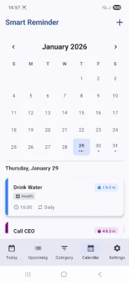 With multiple views available, users can easily see all their reminders for the day, view upcoming reminders organized by date, see a visual monthly view with reminder indicators, or browse reminders by category. The app is also reliable and battery-friendly, working even after device restart and delivering alerts in battery saver mode.