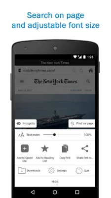 The app also offers a collection of shortcuts for popular internet websites, making it easy to access news, sports, and social networks. Users can easily manage their bookmarks list and access a smart visual history for quick access to recently visited websites. Other features include a readability mode, volume and brightness swipe control for fullscreen videos, and a catalog of add-ons such as PC mode and a translator.