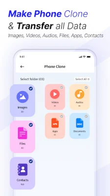 The Share All Files feature allows you to easily share all types of files with other devices. Whether it's a presentation for work, a playlist of your favorite songs, or a collection of vacation photos and videos, you can quickly and easily share them with friends and family. Plus, with the ability to transfer your entire data library from one device to another, mobile transfer has never been easier.