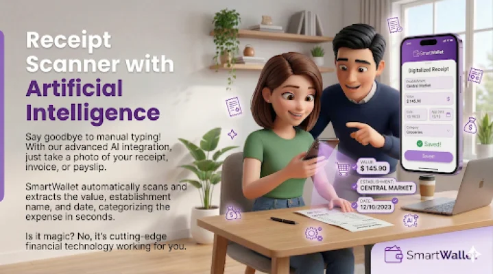 The AI receipt scanner is another standout feature of Smart Wallet. Simply take a photo of your receipt and the app will categorize and record your purchase automatically. This eliminates the need for manual data entry and ensures that all your expenses are accurately recorded.