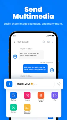 One of the key features of this app is its SMS and MMS messaging capabilities. Users can easily send and receive text messages and share multimedia messages such as photos, videos, and audio files. This allows for a more dynamic and engaging messaging experience.