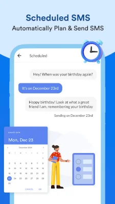 With its quick receive feature, you can read, copy, and forward SMS messages without any delay. You can also pin important messages to the top of your inbox for easy access. Additionally, you can schedule SMS messages to be sent at a specified time, making it perfect for reminders or birthday wishes.