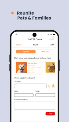 One of the key features of Sniff & Found is its ability to quickly find missing pets. The app uses location-based alerts to unite nearby users and form search teams to help locate the missing pet. Whether the pet is lost near home or far away, Sniff & Found connects users instantly, increasing the chances of a successful reunion.