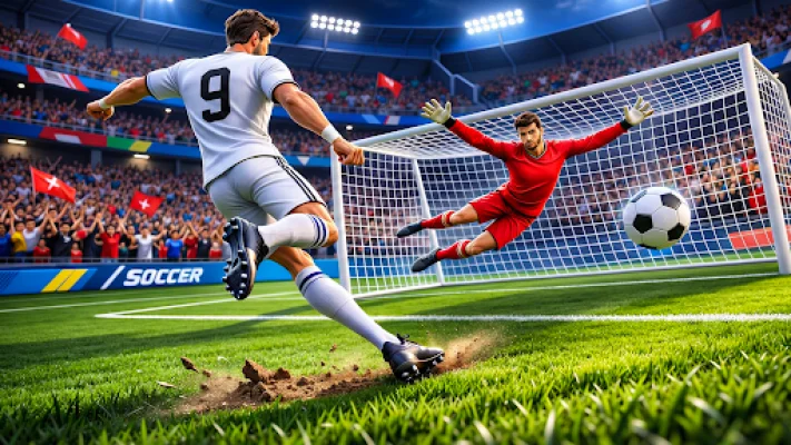 The game features beautifully designed soccer stadiums with realistic crowd reactions and immersive sound effects. Players can choose their favorite team or create their own custom team to dominate the field.