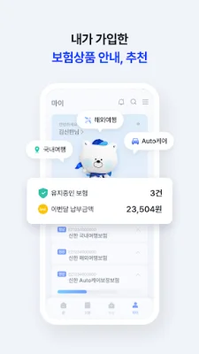 이 앱의 주요 기능으로는 국내/해외 여행보험, 레저보험, 주택화재보험 등 다양한 상품에 가입할 수 있는 기능이 있습니다. 또한 보험계약 확인/변경 및 증명서 발행, 보험료 납입/환급/해지, 내 정보 확인 및 변경, 보험금 청구 등의 서비스를 제공합니다.